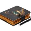 vintage handmade leather journal. Crafted with genuine leather, it radiates authenticity and charm, perfect for those who appreciate classic craftsmanship. The premium antique lock closure adds a touch of elegance and security, ensuring your thoughts and memories are safeguarded within its pages. Inside, you’ll discover 200 brown handmade pages, providing ample space for your musings, sketches, and stories to unfold. Whether it’s for journaling, sketching, or planning, this versatile journal is a timeless companion for your creative endeavors. Treat yourself or a loved one to this exquisite piece, a celebration of tradition and creativity